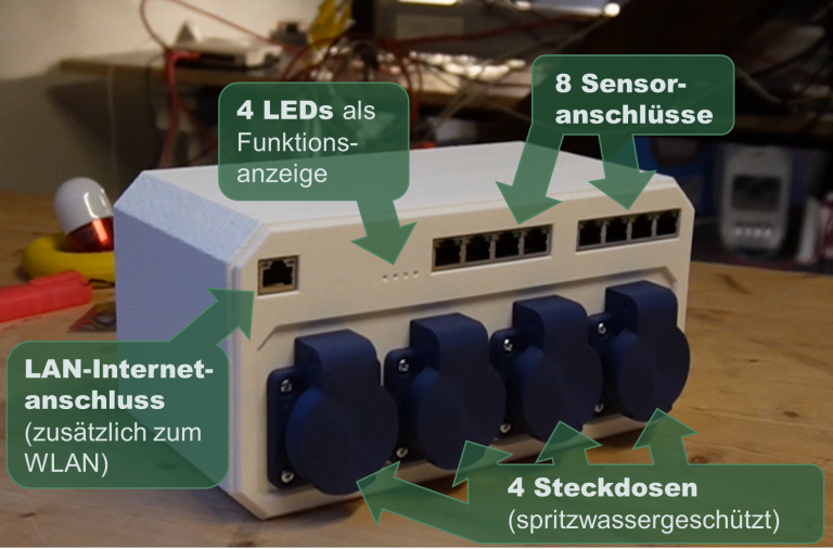 Individuell steuerbare und spritzwassergeschützte Steckdosen